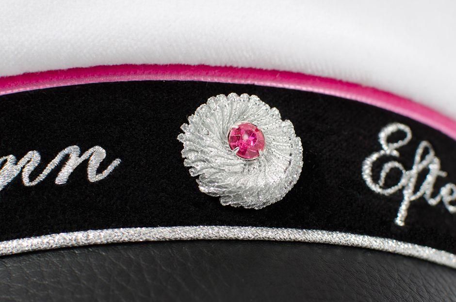 Wilma Nilsson har valt flera roliga tillval på sin studentmössa: Gravyr skärm, brodyr på bak på namnbandet, toppemblem och mycket mer!Designa din studentmössa som Wilma!