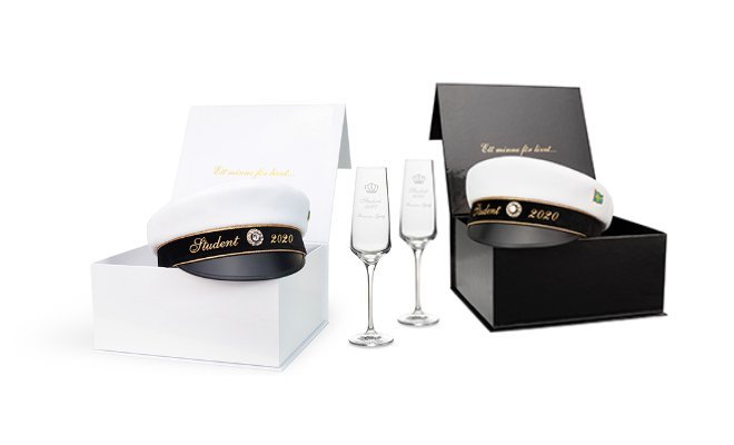 Influencern Ebba Lindblad bloggar och producerar videos på sin Youtubekanal. Hon har designat sin studentmössa hos oss med flera tillval så som Sverigeflaggan som Innerfoder, Programstrimmor och Metallkokard. Ebba har också beställt ett egendesignat Champagneglas, ett egendesignat klädesplagg och givetvis en Memorial Box!